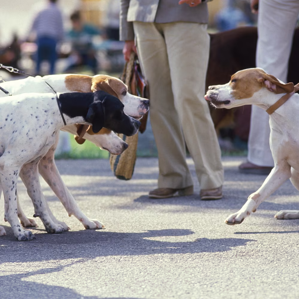 Wanneer er onverwachts een losse hond naar jouw aangelijnde hond toekomt of iemand met een hond aan de lijn plotseling opduikt, zorg dan dat je de riem ontspannen houdt. Neem de hand waarin de riem zit mee met je hond als deze wat afstand neemt en voorkom dat de riemen in elkaar draaien. Als er te veel spanning of stress bij een van de honden ontstaat, kijk dan of je de aandacht van je hond kunt krijgen en loop samen verder. Wees niet verplicht om je hond kennis te laten maken met een andere hond door sociale druk.